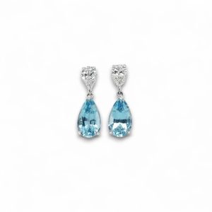 Inspired by the beauty of the ocean, these exquisite earrings feature two pear-shaped aquamarines totalling 3.07cts, displaying a mesmerizing vivid blue hue. Each aquamarine is gracefully complemented by pear – shaped diamonds totalling 0.63cts, both GIA certified for exceptional quality.