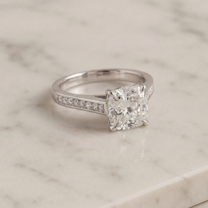 This is truly an outstanding diamond ring, 2.50 cts cushion cut, The stone is GIA certified colour E and clarity VS1.
