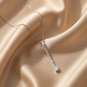 Fili Di Luce collection – Necklace in 18ct white gold with oval, emerald and brilliant cut diamonds 1.15ct. 55 cm long chain with an eyelet at 50 cm.