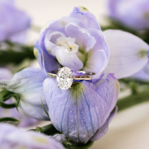 A single oval cut diamond ring 1.24 cts. The stone is GIA certified colour D, clarity VS2. Mounted in all platinum with diamond set under bezel.