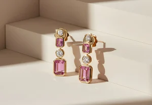 18ct rose gold earrings, featuring exquisite pink sapphires 2.58cts and diamonds 0.43cts.